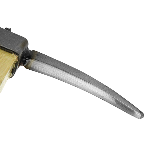 抜けにくく安全に作業が行えるL型クサビを使用しています。 ヘッド部はステンレスなので、錆びにくいです。 ヘッド部は幅広とピッケルの2つの用途で使用できます。 |
