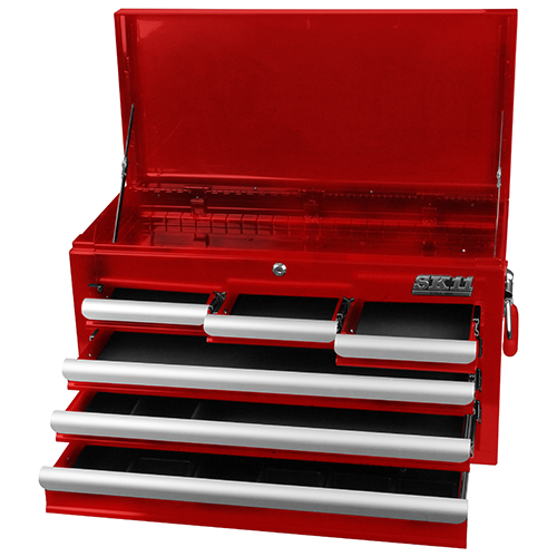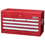 ローラーキャビネット(別売)との組み合わせに最適で、収納力は抜群です。 仕切り板をトップ部に設置し、スペースを区切ることで収納性・利便性が向上しました。 引き出しの全段にEVAマットが付いています。 引出しを全段閉めてトップカバーを閉じると、全段引き出しのロックが可能です。 |