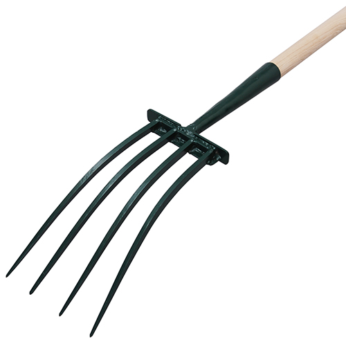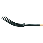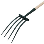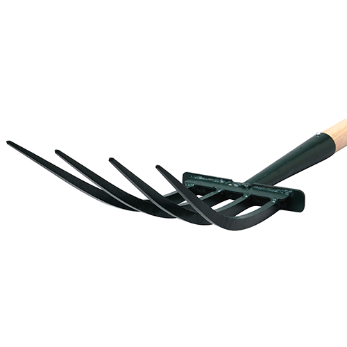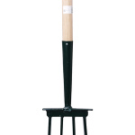 | 機能・特徴 | 立ち姿勢のまま高く盛った畝にも差し込める四本長爪の農具です。