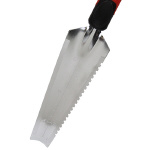 ●ギザ刃付。 ●メモリ付。 ●移植ゴテタイプ。 ●全長:約335mm。 ●刃先長:約170mm。 ●刃肩幅:約60mm。 |