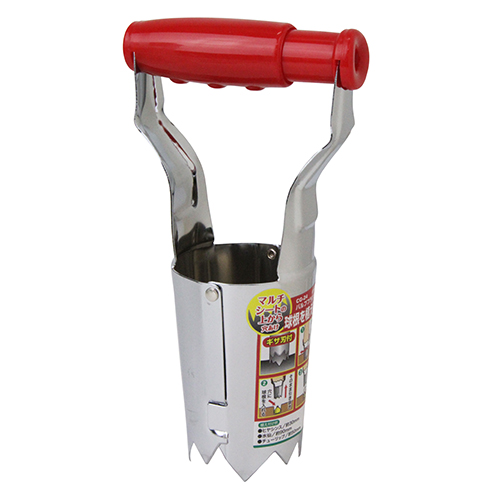 先端にギザを付ける事でマルチシートの上から使用する事が可能です。 土に差し込んで、そのまま引き抜き、穴に球根や苗を入れ、レバーを押すと土を落とし植え付けることができます。 横面にメモリがついているので、差し込む深さが分かりやすいです。 |