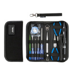 ●サイズ(内寸):235×105×35mm。 ●重量:0.8kg(工具含む)。 ●セット内容1:斜ニッパー(穴付)NN-45・ラジオペンチPR-16・ピンセットPTS-01。 ●セット内容2:調整ドライバーDA-01・プラスドライバーDS-03・DS-23・DS-64。 ●セット内容3:マイナスドライバーDS-33・キャップ付半田コテ30ワット・糸ハンダ・ペースト・コテ台。 |