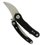 携帯に便利な折りたたみ式で、持ち運びに便利です。 刃はサビに強いステンレス製です。 |
