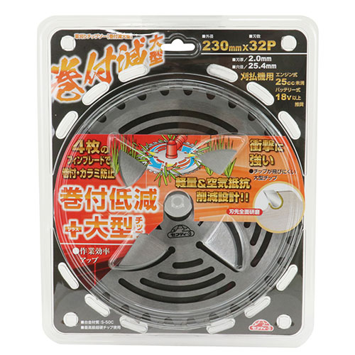 巻き付き防止フィンブレードを4枚搭載し、草刈機軸へ巻き付く前に切断し絡みつきを防止します。 従来品よりも軽く、長時間の作業で疲労を軽減します。 チップは刃先全面研磨のため切れ味抜群です。 |