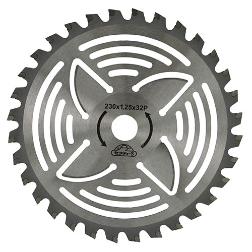 ●刃数:32P。 ●刃厚:2.0mm。 ●穴径:25.4mm。 ●台金厚:1.25mm。 ●推奨:エンジン式刈払機25cc未満・充電式刈払機18V以上。 ●最高級超硬チップ使用。 |