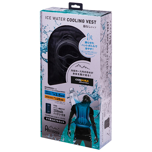 | 機能・特徴 | 背中のタンクに冷水を入れ、凍ったペットボトルなどの保冷剤をチャージ、バッテリーONの簡単3ステップで体を冷やします。