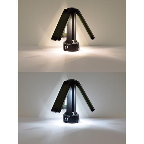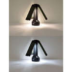 明るさは3段階調整でき、明るさを白色と昼光色の切り替えができます。 三脚から外しても底部にはマグネット、ハンギングフックが付いているので単体でも使用できます。 点灯部がそれぞれ個別に、上下180度開き、270度回転します。 丈夫な三脚付きで、1/4インチのネジがついているためカメラの三脚としても使用できます。 |
