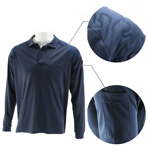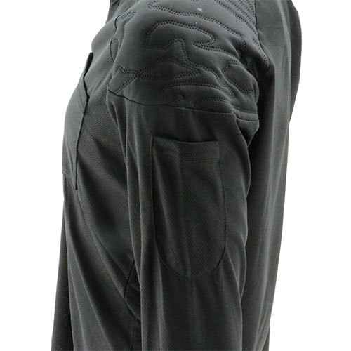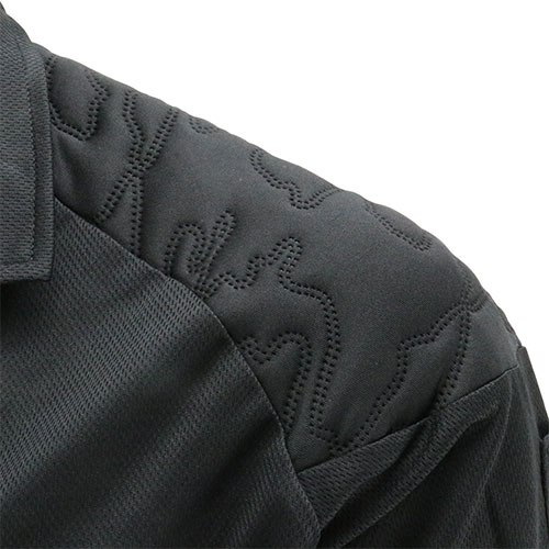 ショルダーキルトが男性らしいシルエットにみせます。 商品全体では約150から170gと軽量仕様で吸汗速乾素材です。 胸ポケットとペン差し1ツ口付きです。 両脇には消臭テープを採用しているので、気になる臭いを低減します。 |