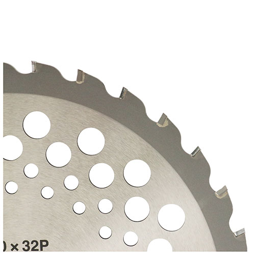 ●刃数:32P。 ●刃厚:2.0mm。 ●穴径:25.4mm。 ●台金厚:1.3mm。 ●推奨:充電式刈払機18V以上・エンジン式刈払機25cc未満。 ●最高級超硬チップ使用。 |