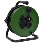 ●定格電流:4A(全巻時)・15A(全延時)。 ●電線長:20m。 ●電線種:VCT1.25m2×2心。 ●入力プラグ:防雨2Pプラグ。 ●コンセント形状:2P防雨キャップ付。 ●コンセント数:4。 ●質量:4.1kg。 |