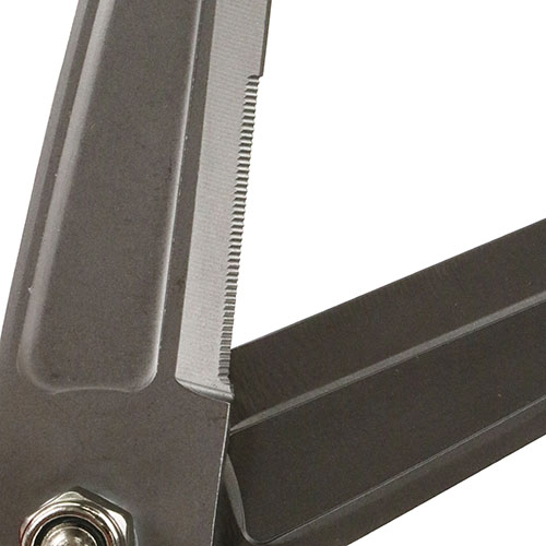 枝滑り防止のギザ刃付きで、枝を逃さずしっかり切断できます。 サビに強く、お手入れも簡単なステンレス刃です。 |