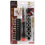 ●マイナスネジ用(-4mm・-6mm)六角穴付きネジ用(2.5・3・4・5・6mm)。 ●6.35mm差込角ソケット(5.5・7・8・10・12・13mm)。 |