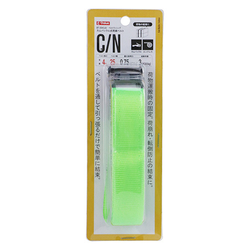 ●全長:4m。 ●最大使用力:0.75kN(76kg)、破断荷重:3kN(305kg)。 ●バックルの種類:カムバックル。 ●端末の仕様:エンドレス。 ●ベルトカラー:ライムグリーン。 |
