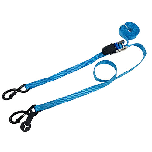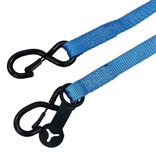 ●全長:5.0m(固定側0.5m/調整側4.5m)。 ●最大使用力:1.5kN(152kg)、破断荷重:6.0kN(611kg)。 ●バックルの種類:ラチェットバックル。 ●端末の仕様:オープンフック(カラビナ型)。 |