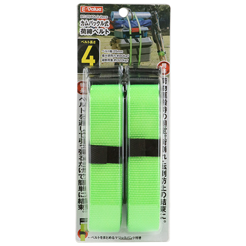 ●全長:4m。 ●最大使用力:0.8kN(82kg)、破断荷重:3.2kN(326kg)。 ●バックルの種類:カムバックル。 ●端末の仕様:エンドレス。 ●ベルトカラー:ライムグリーン。 |